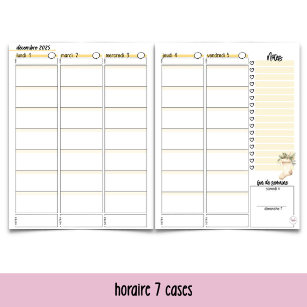 - Semainiers pré-datés de août 2025 à la fin juillet 2026