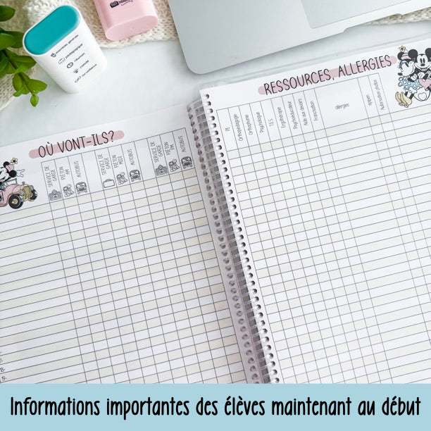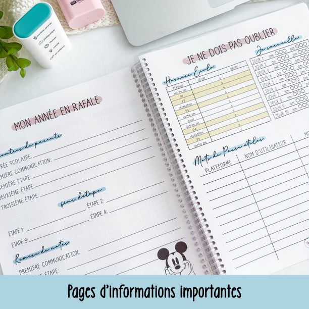- Une page pour vos mots de passe à se rappeler, surveillance et horaire de l'école