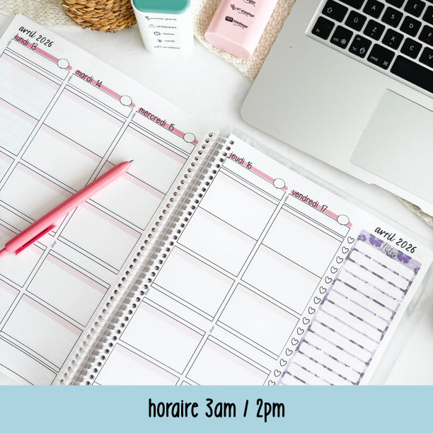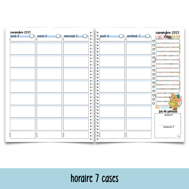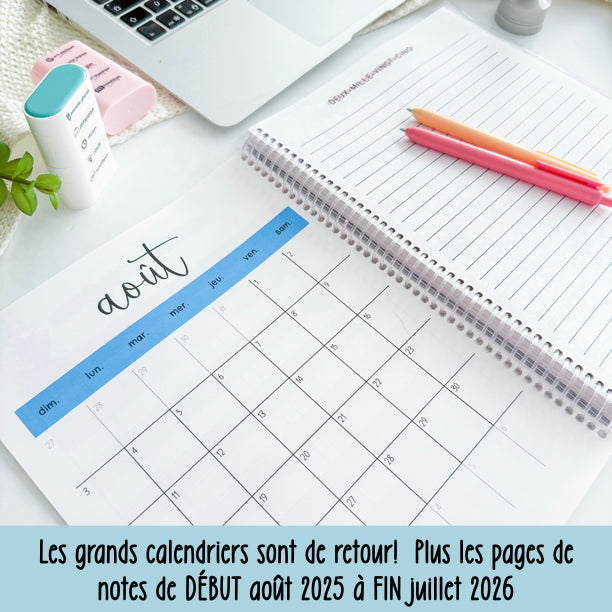 - Semainiers pré-datés de août 2025 à la fin juillet 2026