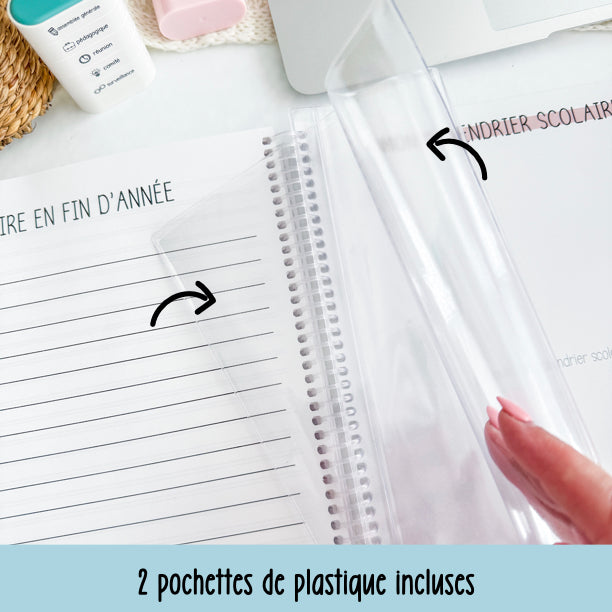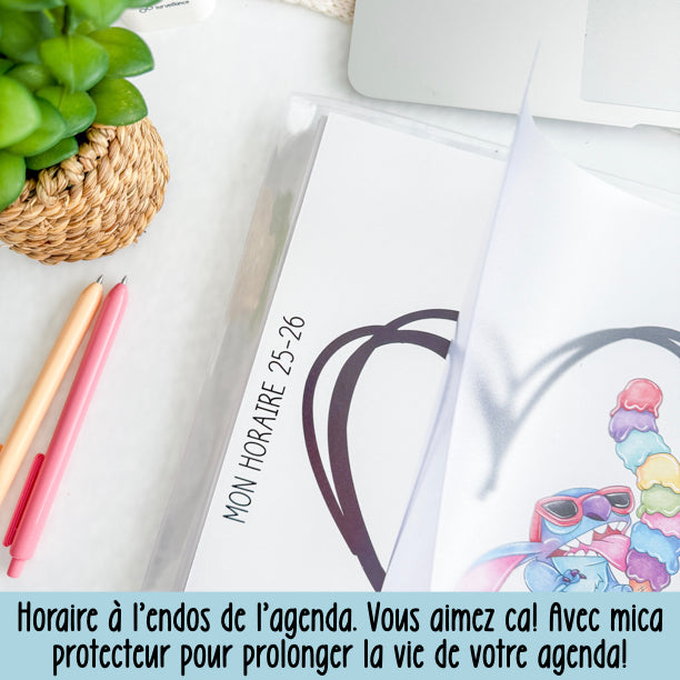 - deuxième page couverture cartonnée mais NON plastifiée pour y inscrire votre horaire.