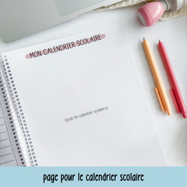 - Pages pour y placer votre calendrier scolaire et votre horaire