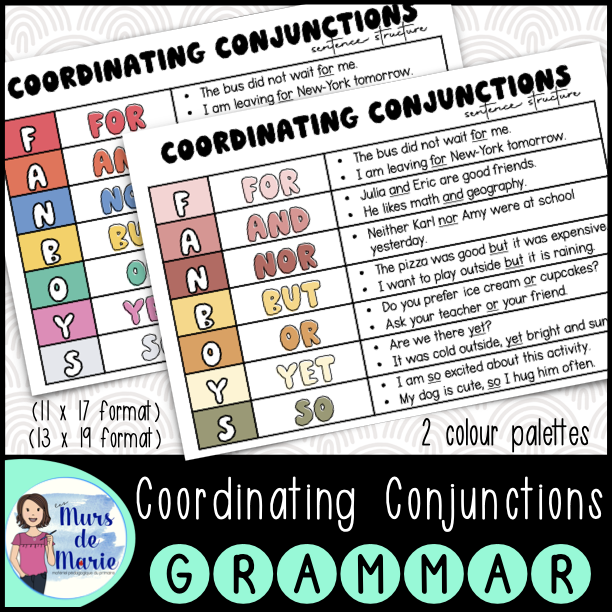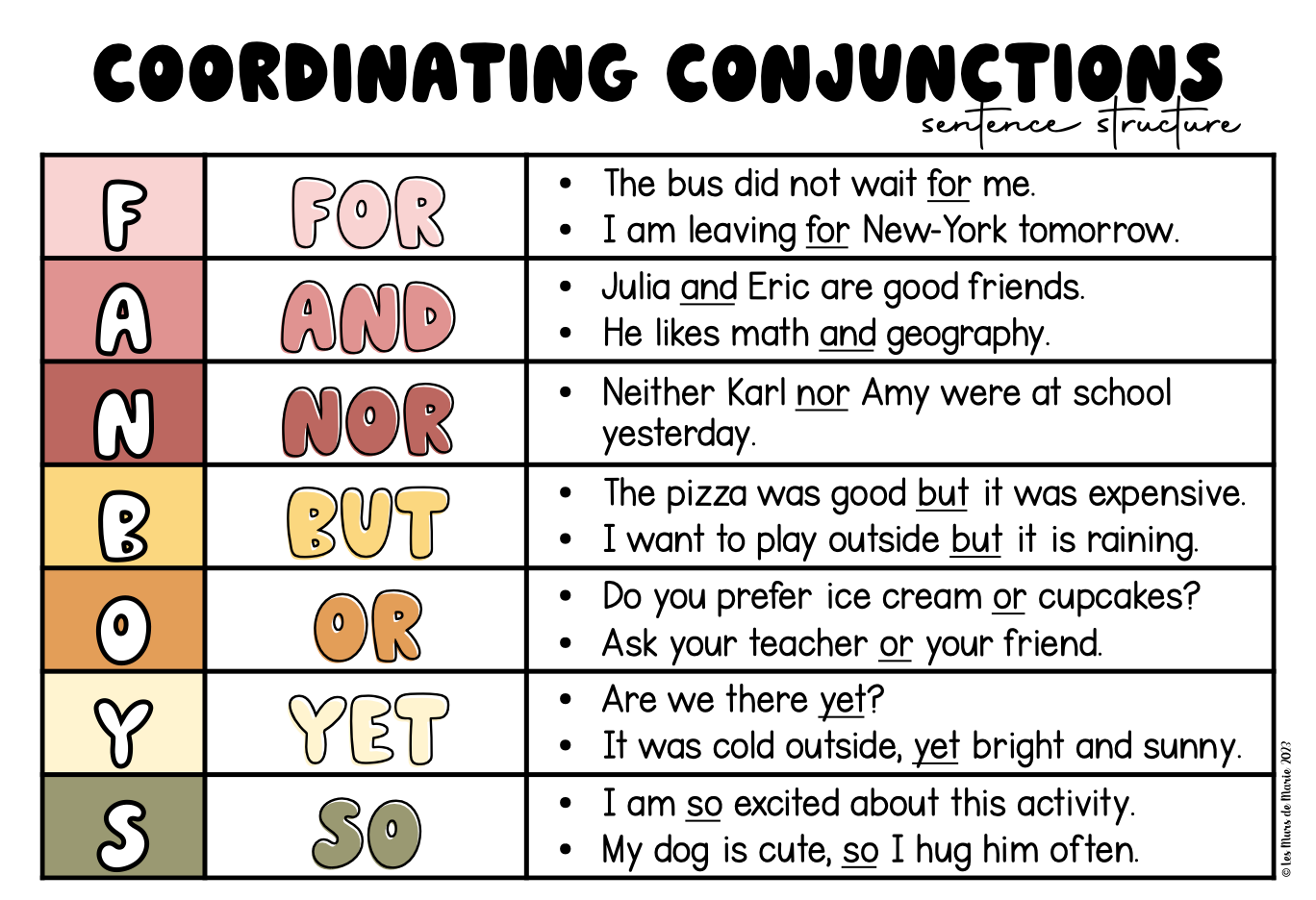 This FANBOYS poster presents the 7 coordinating conjunctions with examples.