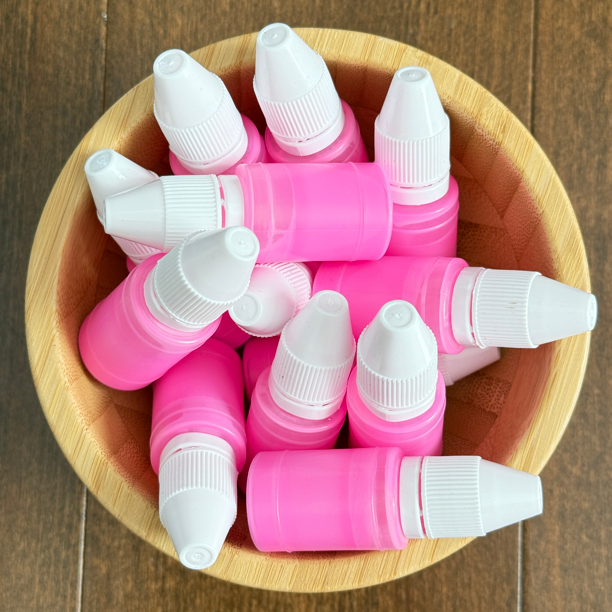 Bouteilles de 10 ml d'encre pour vos étampes. Il suffit de mettre quelques gouttes sur le tampon de votre étampe, le laisser s'imbiber et votre étampe redevient comme neuve!