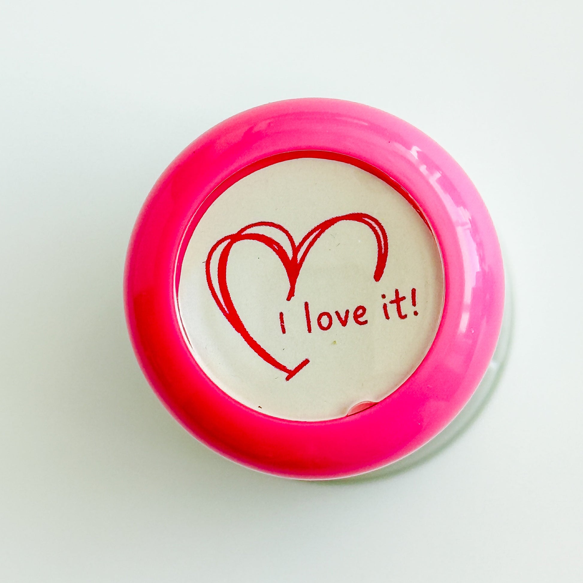 Comes pre-inked in pink and ready to go. Refillable for endless stamping.