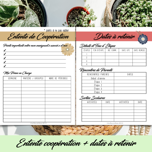 - une page de dates à retenir (début/fin d'étape, rencontres de parents, sorties scolaires)