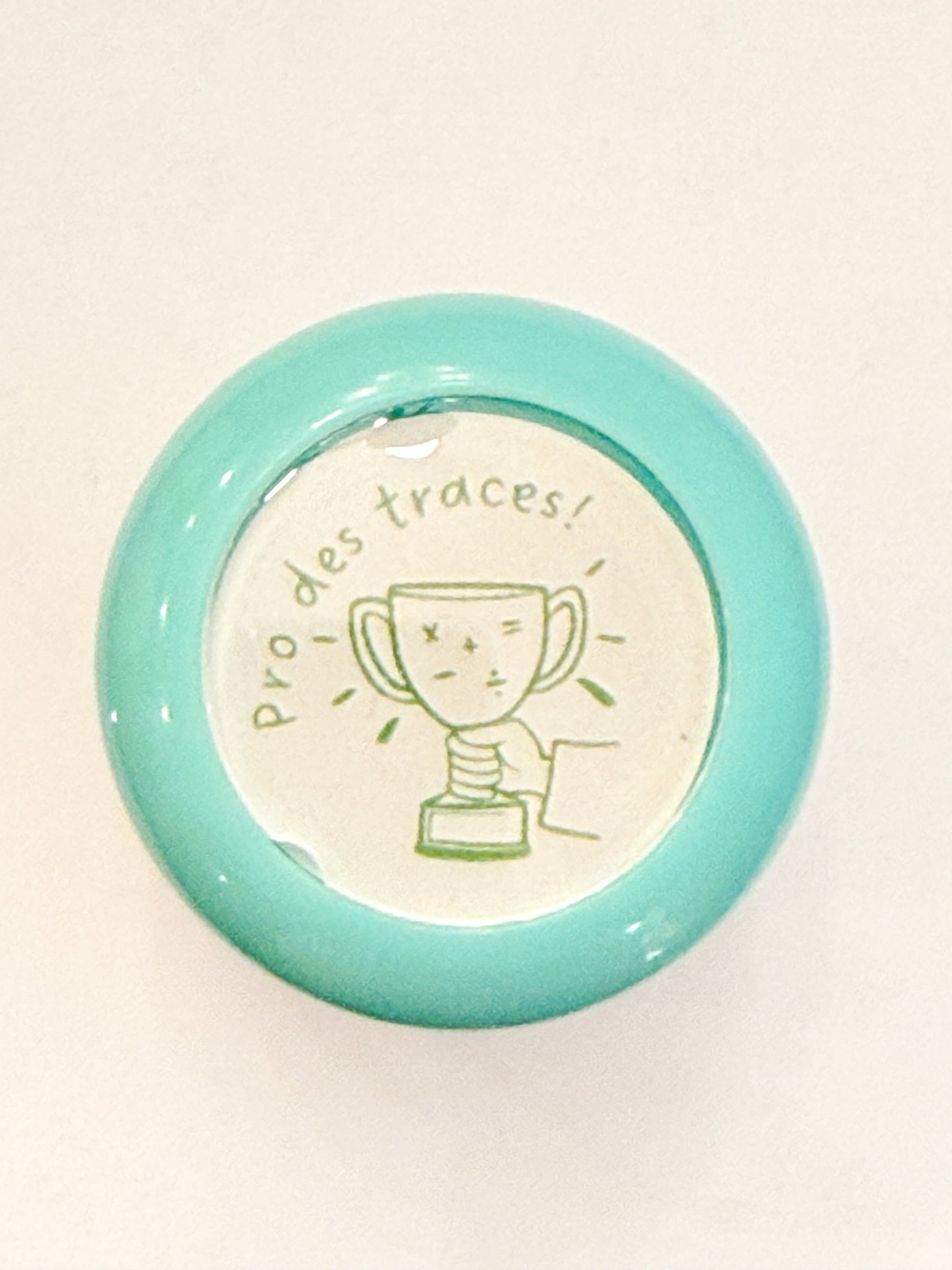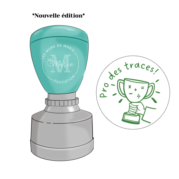 L'étampe vient préencrée en VERT et est RECHARGEABLE.