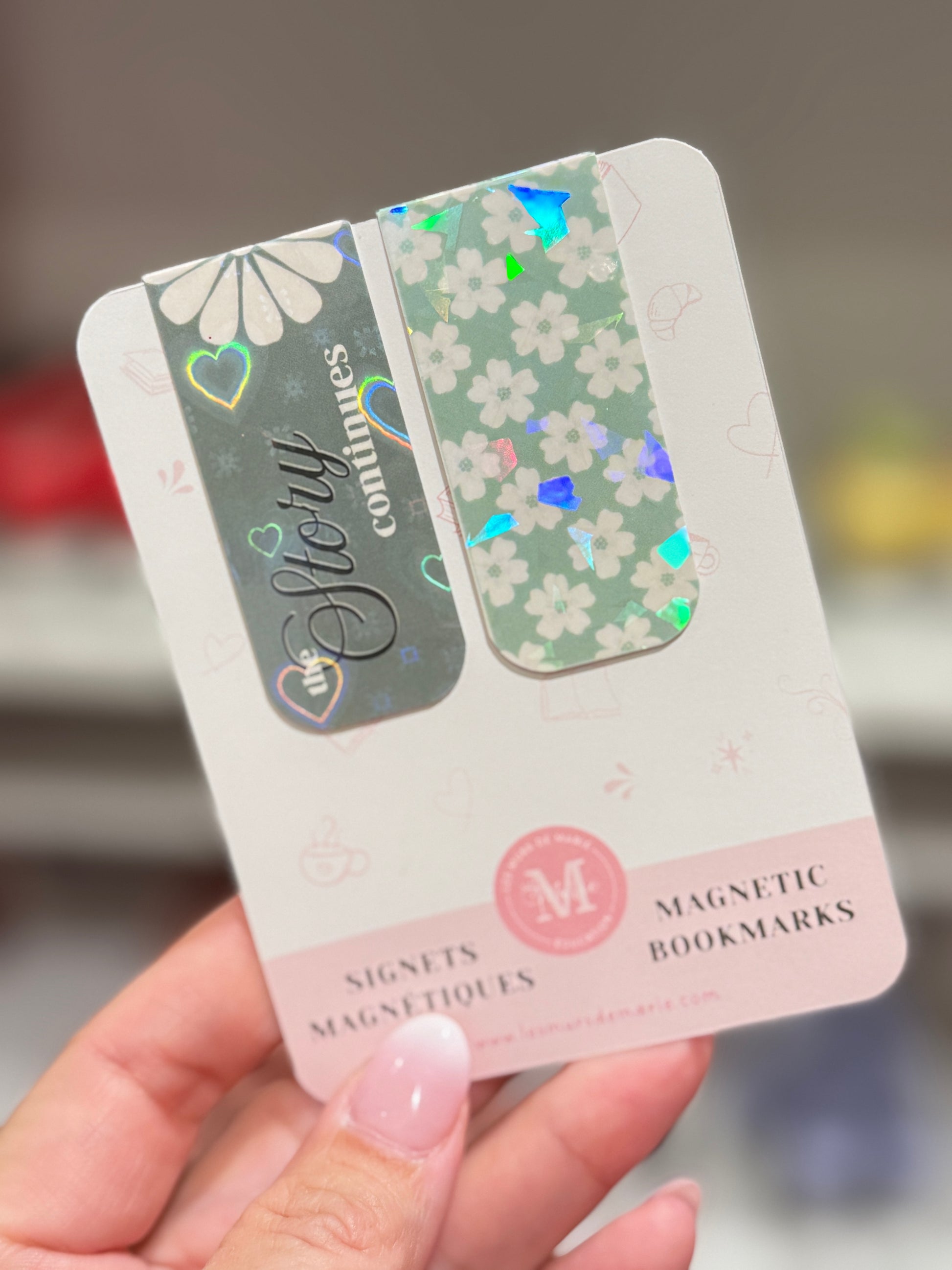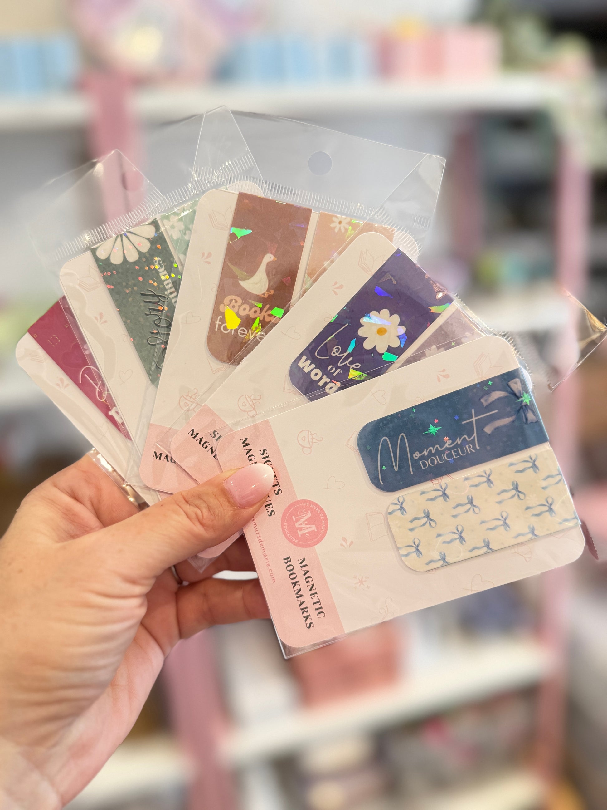 Ajoutez une touche de magie à vos lectures avec cet ensemble de 2 signets magnétiques entièrement faits à la main. Conçus pour tenir vos pages en douceur, ces signets combinent fonctionnalité, durabilité et une finition irrésistiblement brillante.