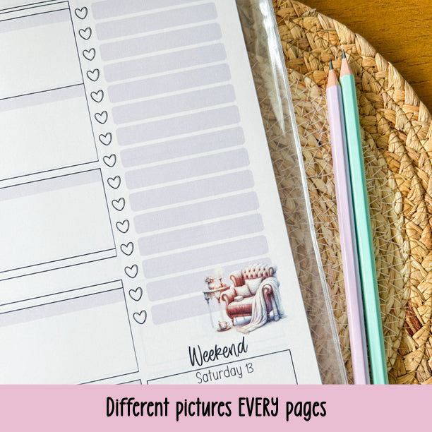 - pre-dated weekly planning pages